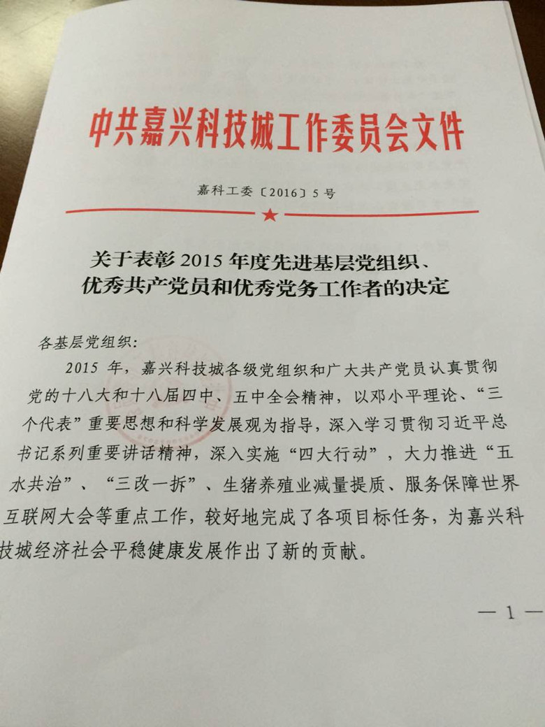 在7月1日召開的嘉興科技城慶祝中國共產(chǎn)黨成立95周年表彰大會上,99名黨員被授予“優(yōu)秀共產(chǎn)黨員”稱號,我司盧永根、鄭勝利兩位黨員榜上有名,被授予“2015年度優(yōu)秀共產(chǎn)黨員”稱號。這是上級黨委對這兩位黨員工作的肯定,也是公司的集體榮譽(yù),希望全體共產(chǎn)黨員和員工向他們學(xué)習(xí),愛崗敬業(yè),立足崗位多作貢獻(xiàn)。