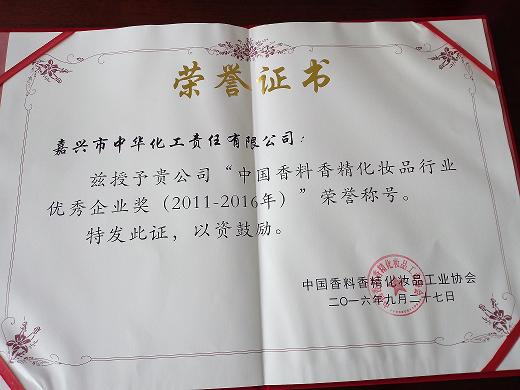 公司榮膺“中國(guó)香料香精化妝品行業(yè)優(yōu)秀企業(yè)獎(jiǎng)”
