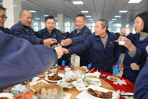 鑼鼓聲聲辭舊歲,張燈結(jié)彩迎新年。2019年1月17-18日中午,公司迎來了一年一度的年夜飯活動(dòng)。本次年夜飯以“金豬納福、喜迎新春”為主題,在公司食堂隆重舉行。公司董事長(zhǎng)朱維君、總經(jīng)理陳建領(lǐng)等領(lǐng)導(dǎo)與公司800余名員工歡聚一堂,共話成果,細(xì)數(shù)了過去的一年中大家奮力拼搏的點(diǎn)點(diǎn)滴滴。在一片歡聲笑語中,公司領(lǐng)導(dǎo)與全體員工舉杯共慶佳績(jī),并對(duì)員工們辛勤的付出表示了衷心的感謝,同時(shí)希望大家在新的一年里繼續(xù)努力,創(chuàng)造更好的成績(jī),活動(dòng)在美好的新年祝福聲中順利地落下了帷幕。