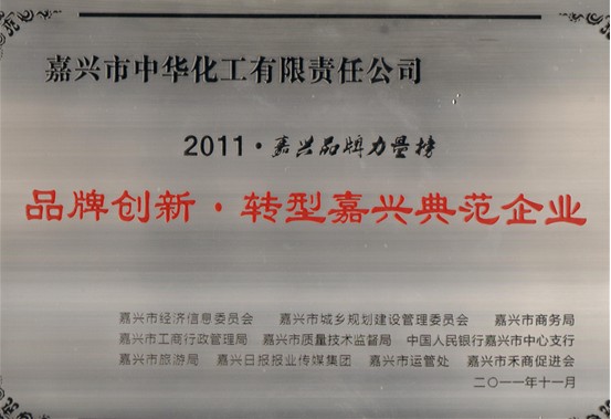 在此次盛典上,嘉興市中華化工有限責(zé)任公司榮獲“2011•嘉興品牌力量榜——品牌創(chuàng)新•轉(zhuǎn)型嘉興典范企業(yè)”殊榮。眾所周知,中華化工30多年來一直辛勤耕耘于香蘭素專業(yè)生產(chǎn)制造領(lǐng)域,鑄就了當(dāng)今世界香蘭素行業(yè)龍頭的領(lǐng)導(dǎo)地位,“香飄四海,愛我中華”,公司主打產(chǎn)品——“久珠”牌香蘭素早已譽滿全球,屹立于世界知名品牌之林,為“中國制造”在世界騰飛寫下了濃墨重彩的一筆,此次獲獎?wù)羌亦l(xiāng)人民對中華化工30年艱苦創(chuàng)業(yè)、不斷進取的深情褒獎。讓我們共同期待中華化工在香蘭素制造乃至更寬廣的事業(yè)領(lǐng)域展翅翱翔。