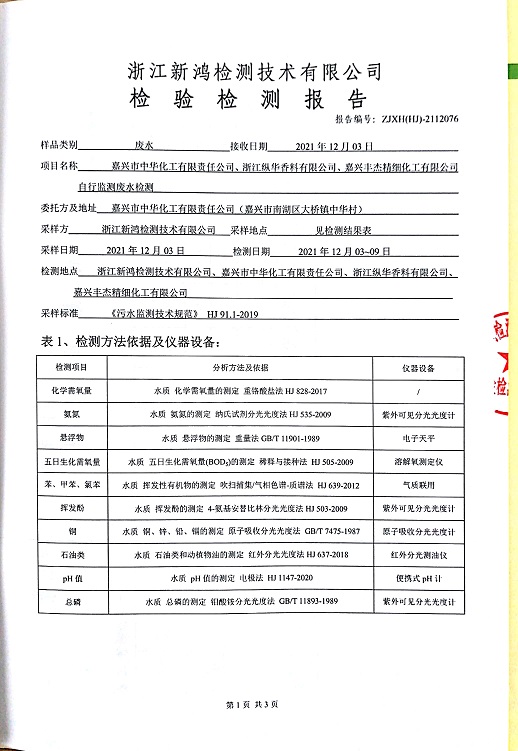 報告名稱:中華化工、縱華、豐杰3、4季度廢水檢測報告