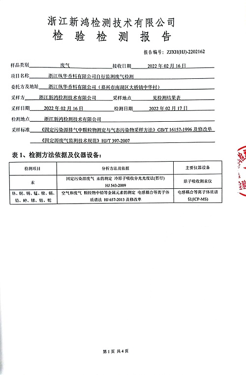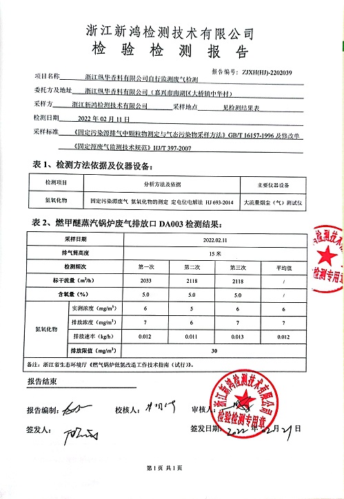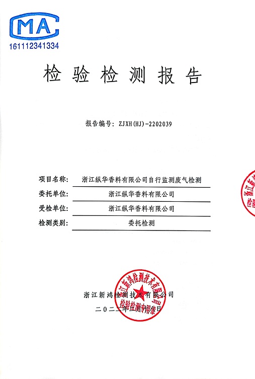 - 縱華香料5月廢氣檢測(cè)報(bào)告