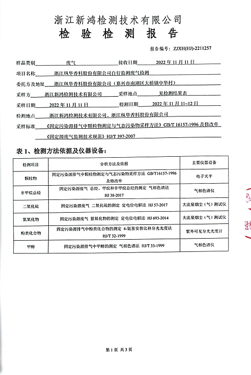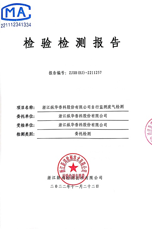 - 縱華香料5月廢氣檢測(cè)報(bào)告