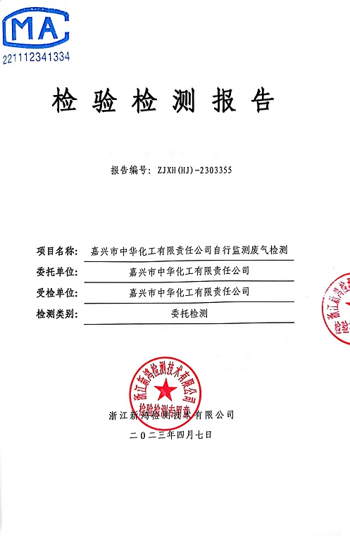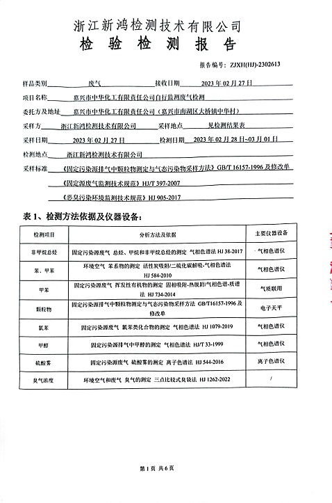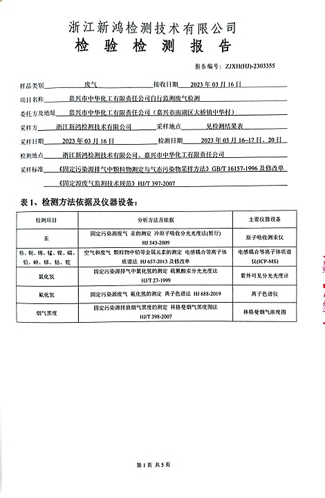 報(bào)告名稱:中華化工2023年上半年廢氣檢測(cè)報(bào)告