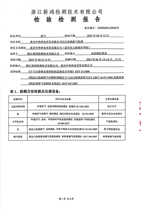 - 中華熱電6月廢氣檢測(cè)報(bào)告