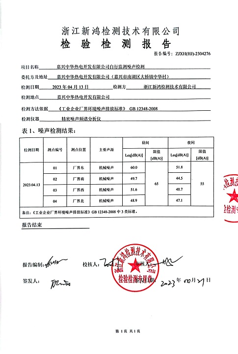 報告名稱:中華熱電2季度噪聲檢測報告