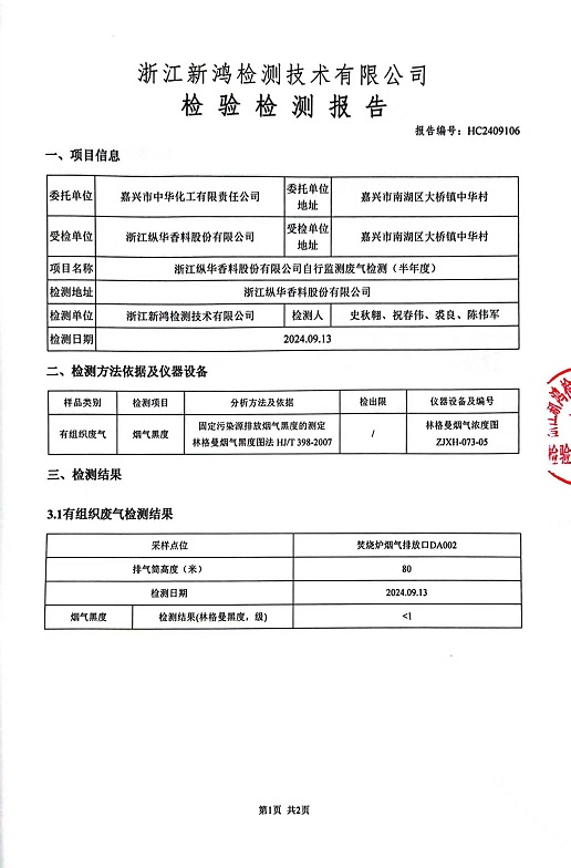 - 縱華香料5月廢氣檢測(cè)報(bào)告
