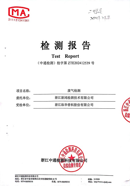 - 縱華香料5月廢氣檢測(cè)報(bào)告