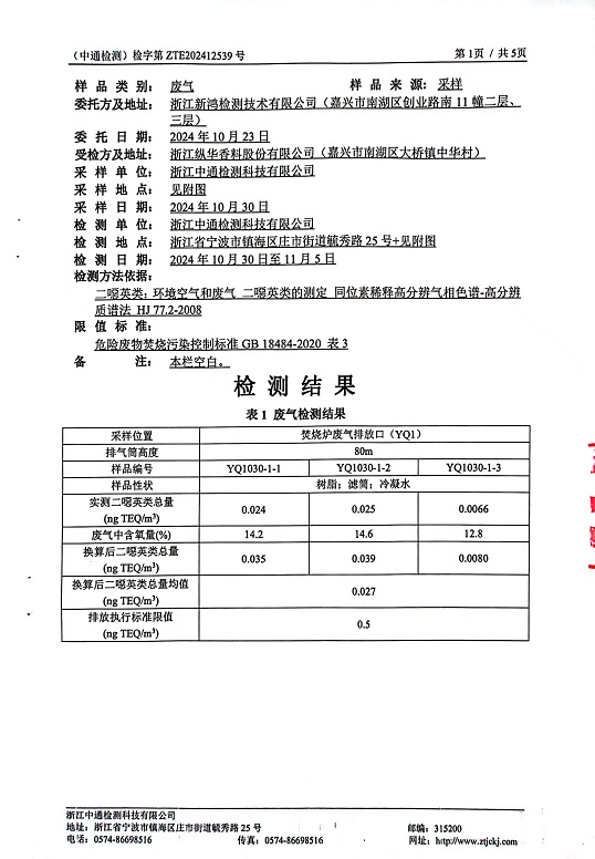 報(bào)告名稱:2024年縱華二噁英下半年檢測(cè)報(bào)告