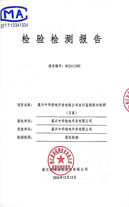 報(bào)告名稱:中華熱電12月廢水檢測(cè)報(bào)告