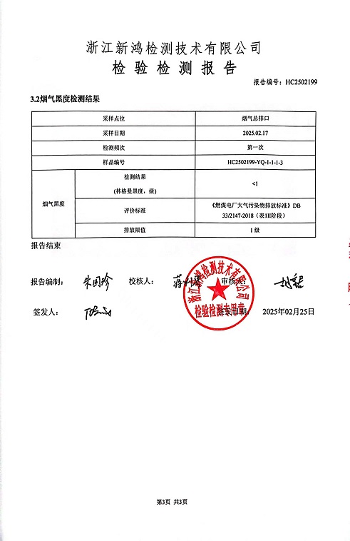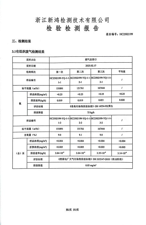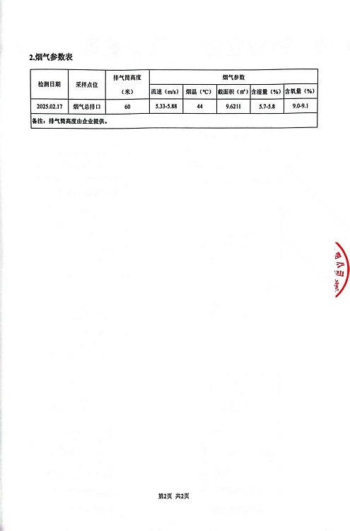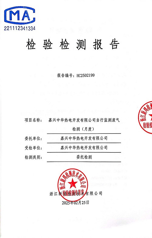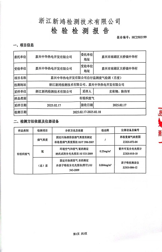 報告名稱:中華熱電2025年2月煙氣檢測報告
