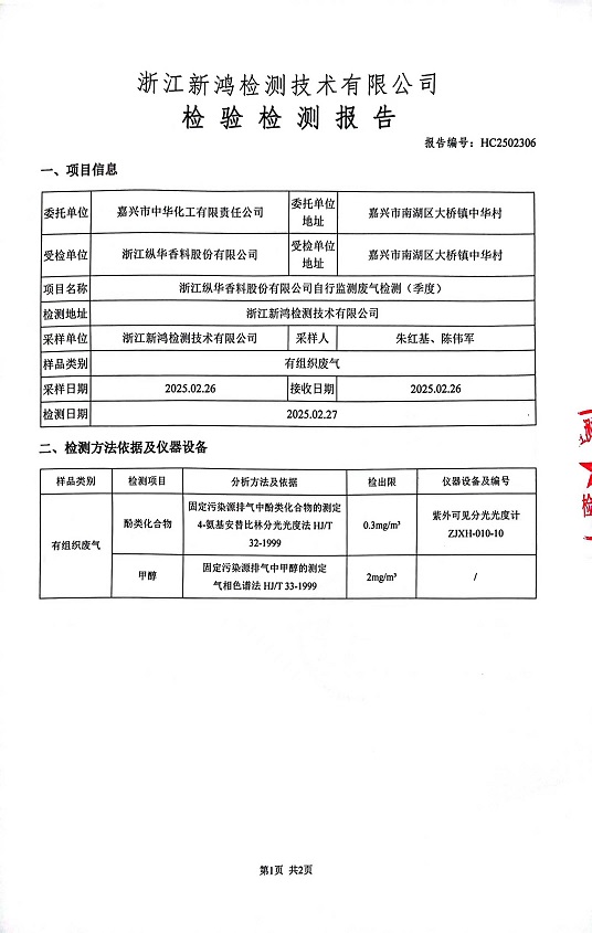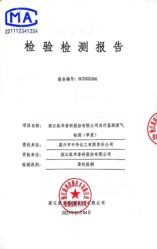 - 縱華香料5月廢氣檢測(cè)報(bào)告