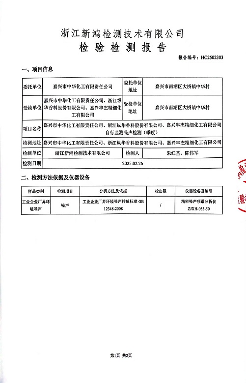 報告名稱:中華化工2025年1季度噪聲檢測報告