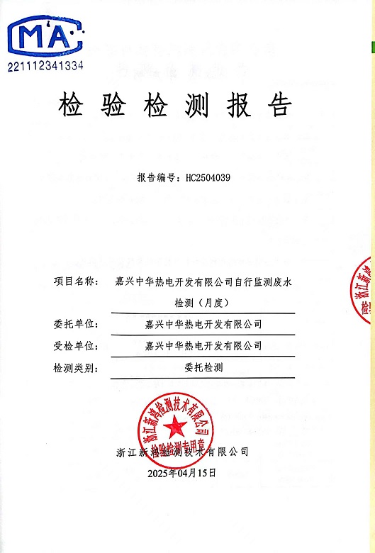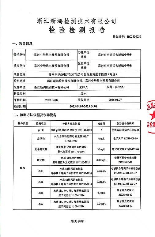 - 中華熱電4月廢水檢測(cè)報(bào)告