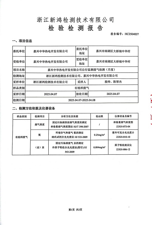 報告名稱:中華熱電4月廢氣檢測報告