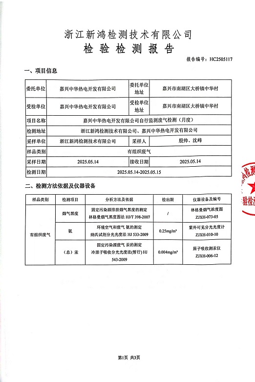 - 中華熱電5月廢氣檢測(cè)報(bào)告