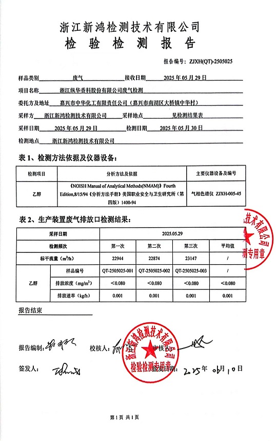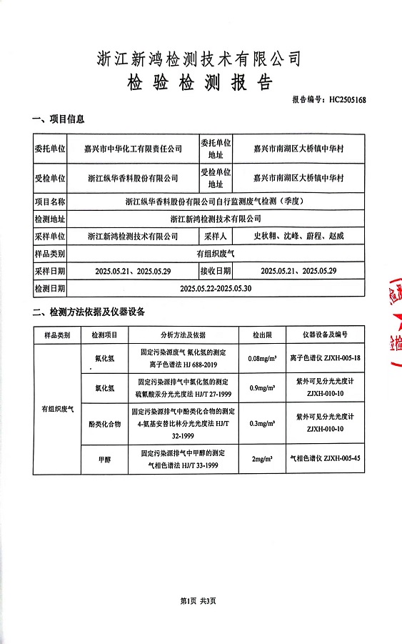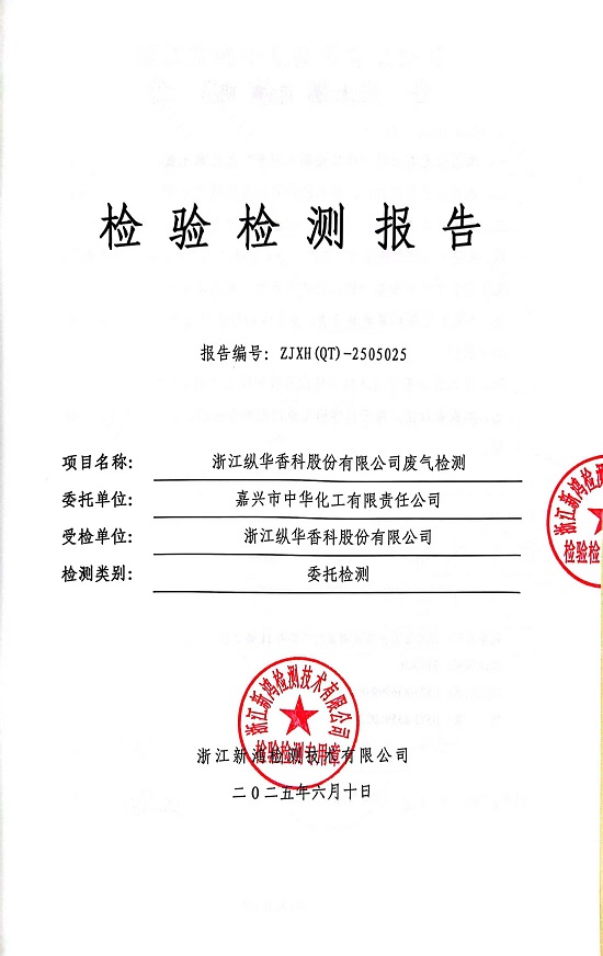 - 縱華香料5月廢氣檢測報告